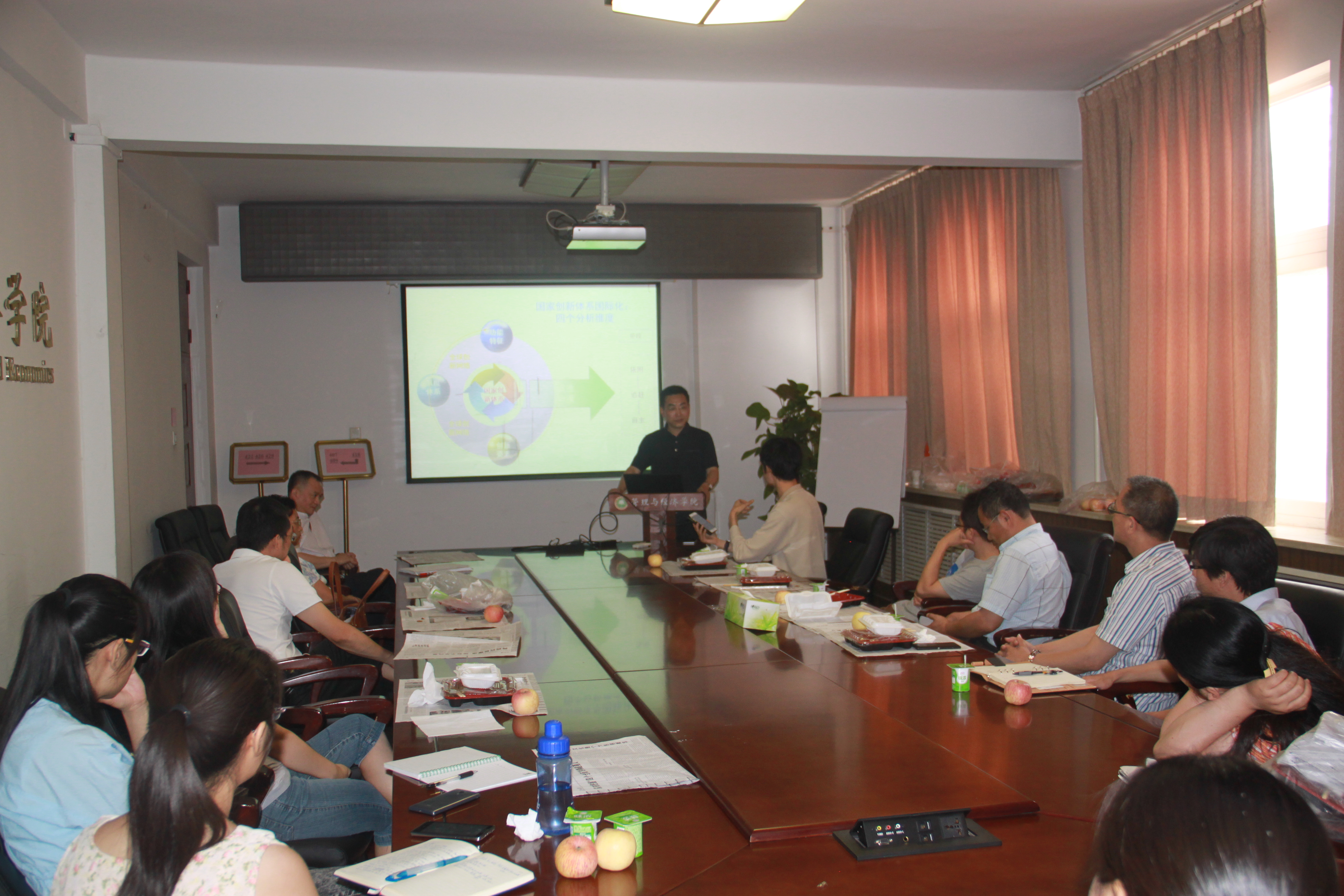 2015年6月23日,管理工程系刘云教授在主楼418进行了关于“国家自主创新体系国际化理论与政策研究”的午餐会报告,报告会由颜志军教授主持,管理与经济学院院长魏一鸣教授等10多位教师及部分博士生参加了报告会。